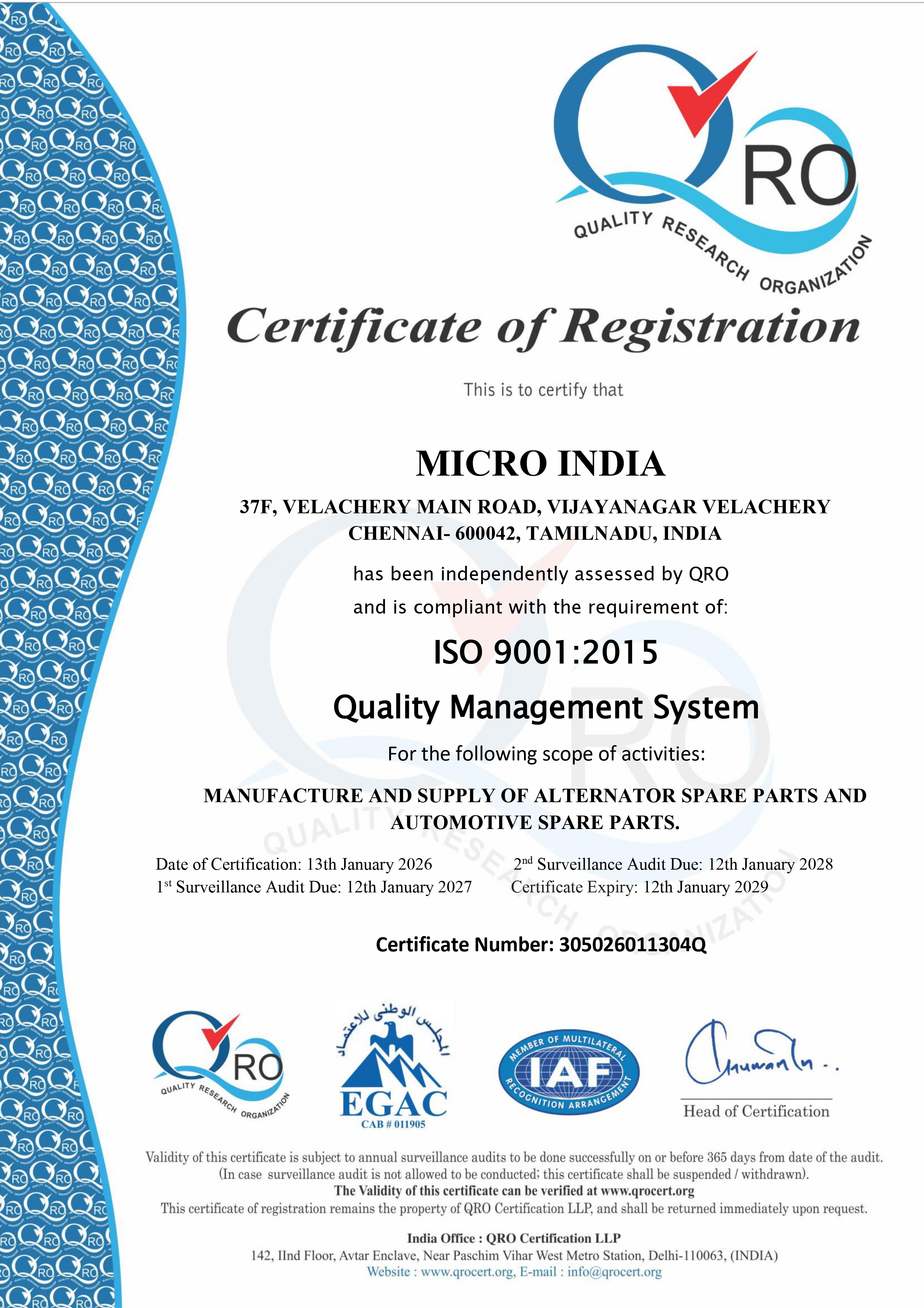 At Micro India, quality is at the core of everything we do. Our manufacturing processes adhere to internationally recognized standards to ensure consistent performance and customer satisfaction.
